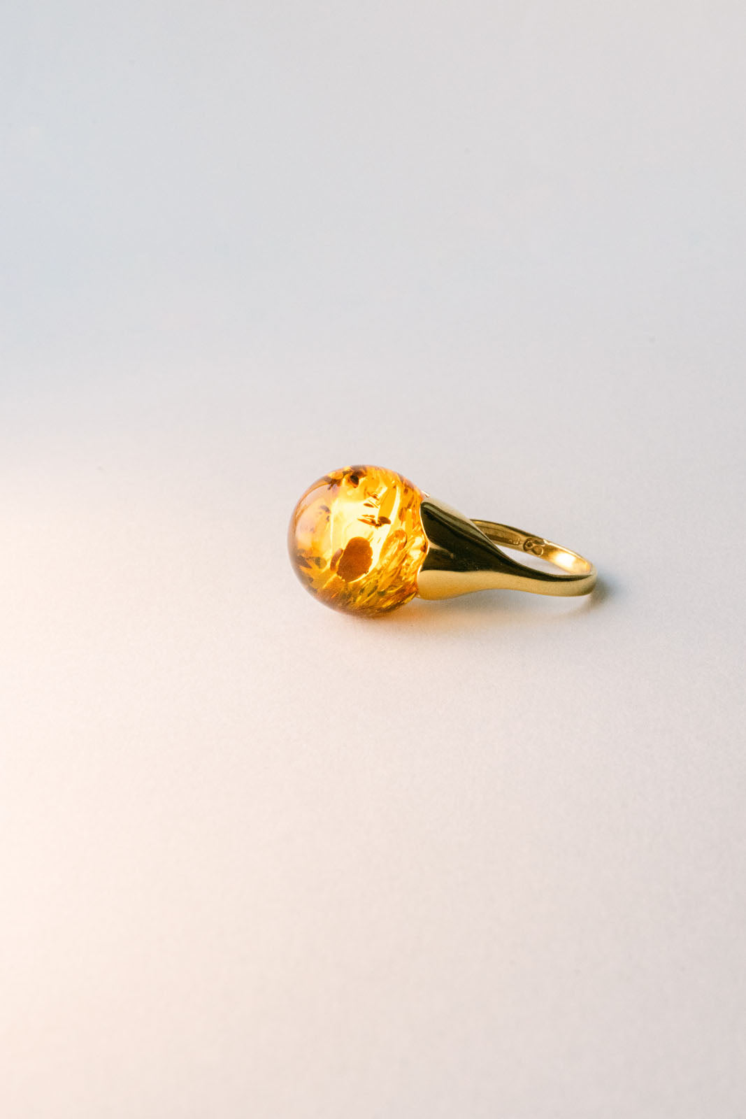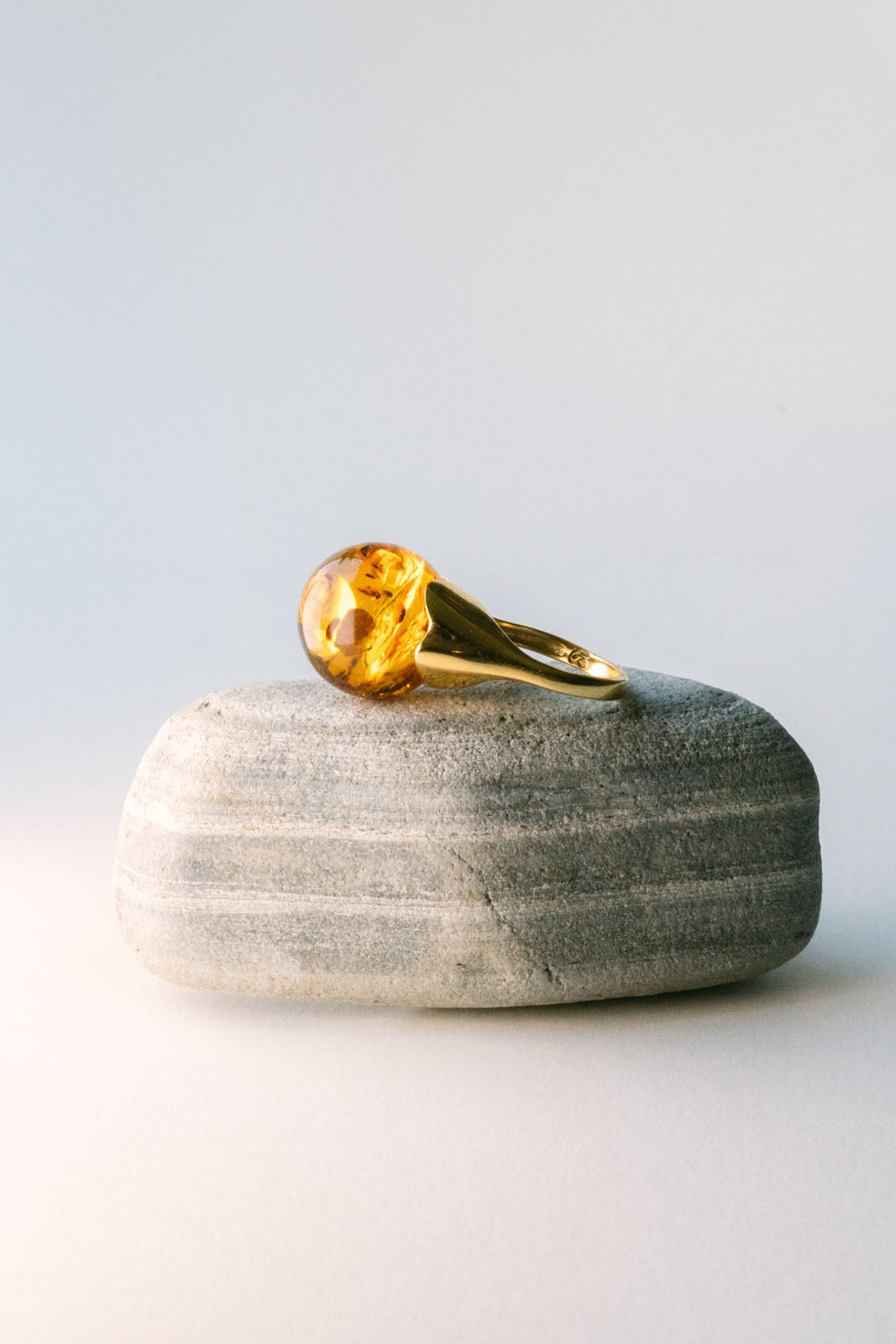 Indulge in the golden charm of the Chunky Honeyball Ring, featuring a radiant sphere of genuine Baltic amber. Set in ...