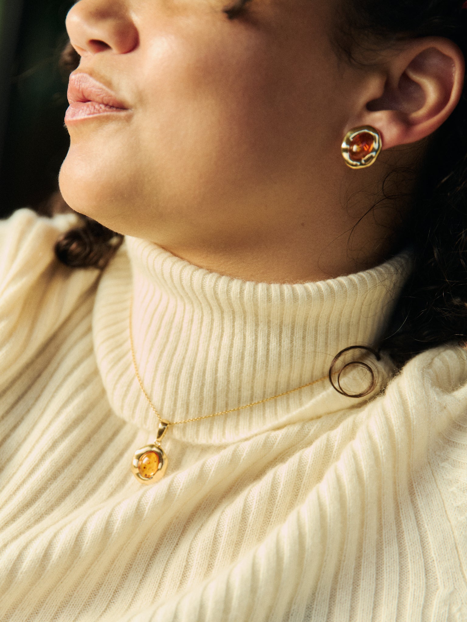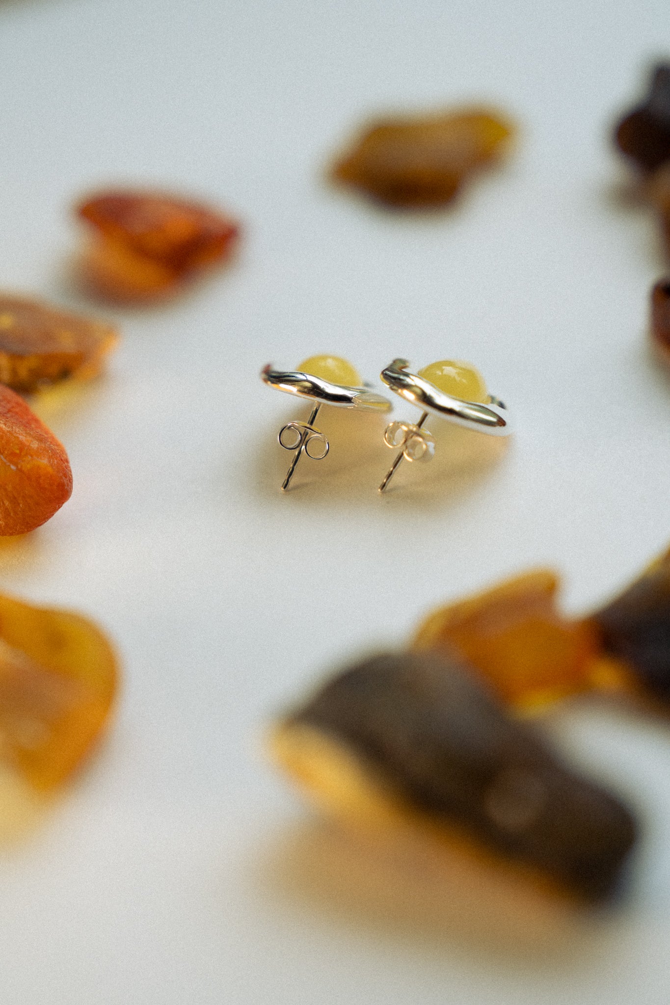 Like morning light caught in a drop of honey, the Dewdrop Earrings glow with natural warmth. Their smooth, ovular amber form reflects the gentleness of dawn—offering a touch of earthy radiance to your everyday.