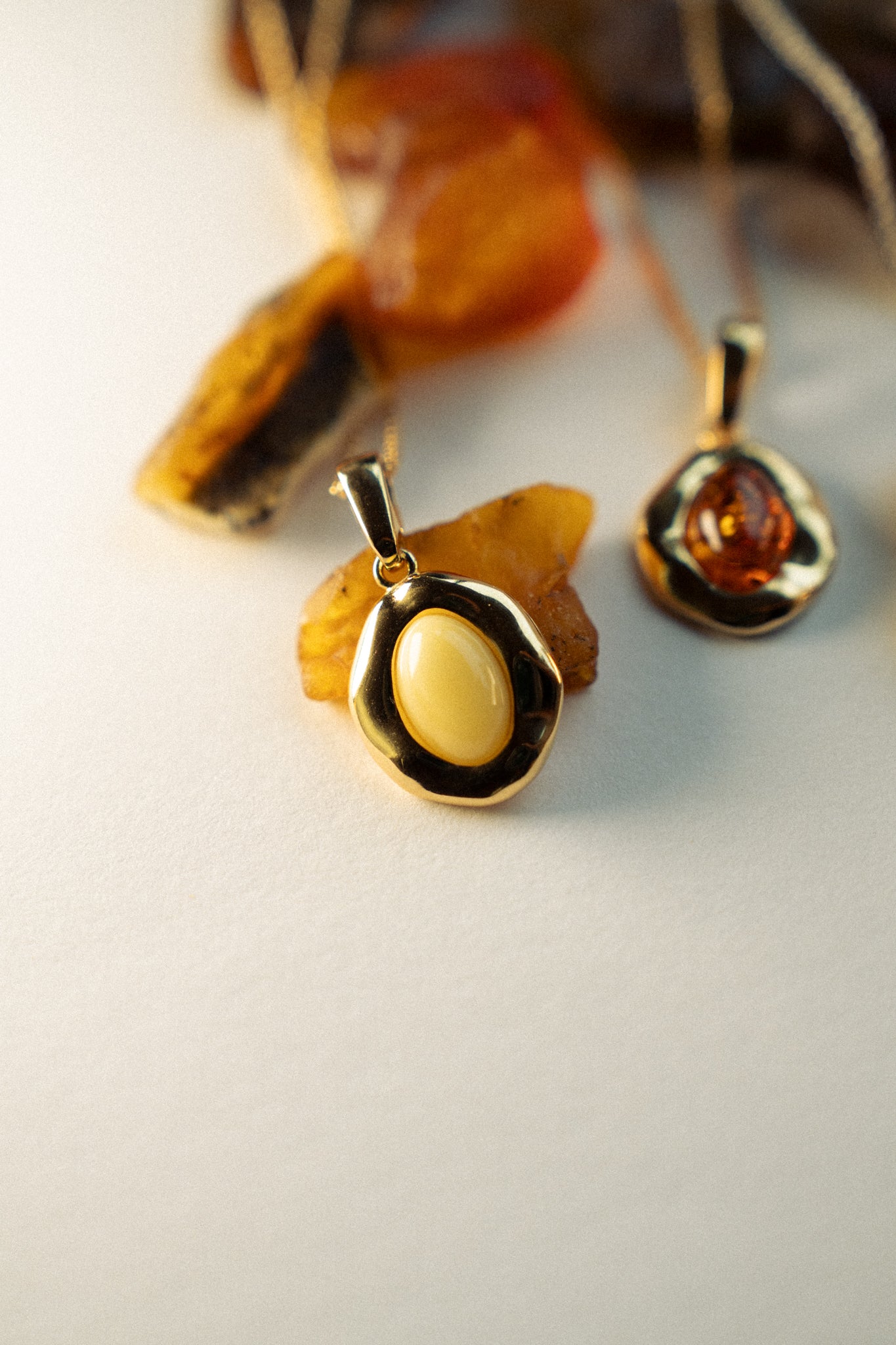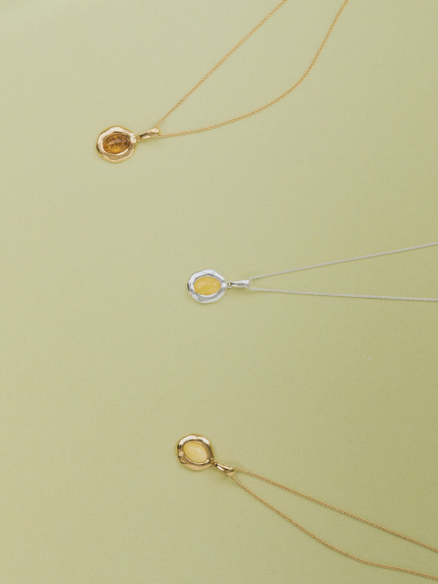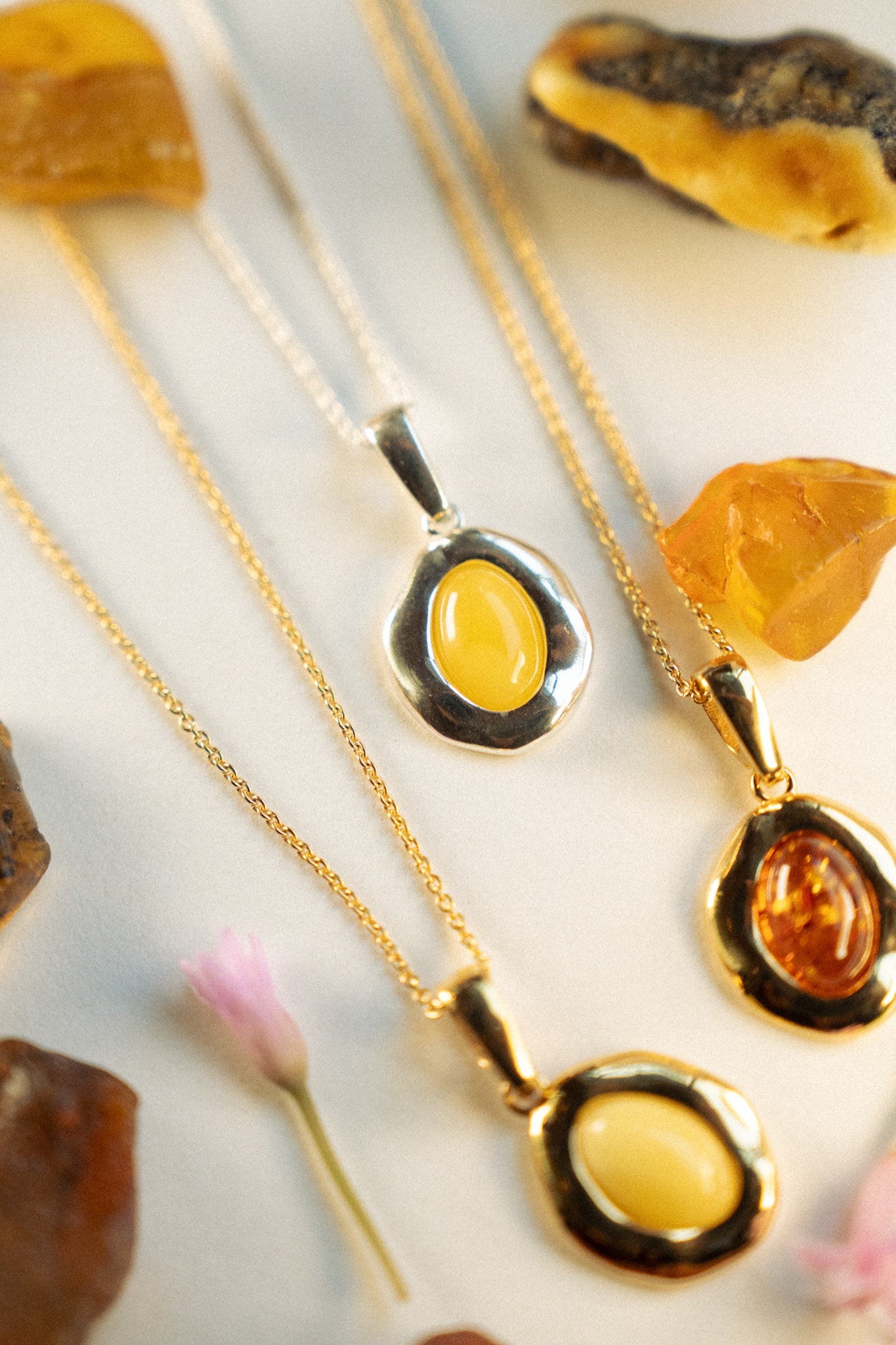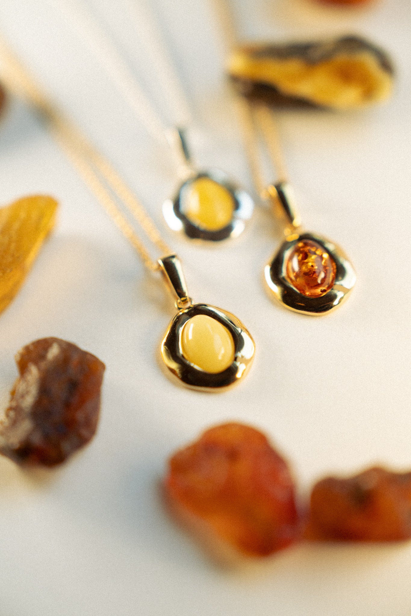 A warm amber pendant formed from ancient resin, glowing like sunlight held in time. The Golden Resin Necklace celebrates the natural origins of Baltic amber—earthy, radiant, and effortlessly refined.