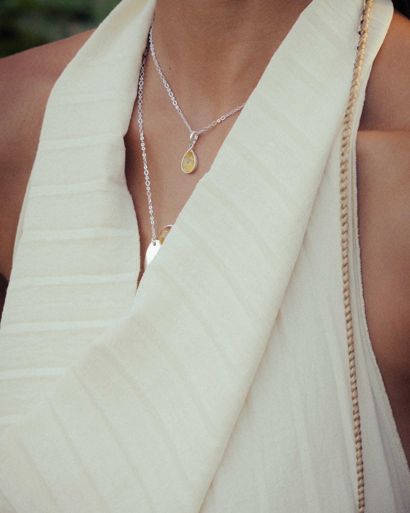 Bring a soft glow to your everyday look with the Honey Drop Necklace. Featuring a radiant teardrop of genuine Baltic amber in a warm honey tone, this piece captures the gentle light of late summer. Elegant on its own or paired with our Baltic Amber Drop Earrings, it’s a timeless addition to any collection.